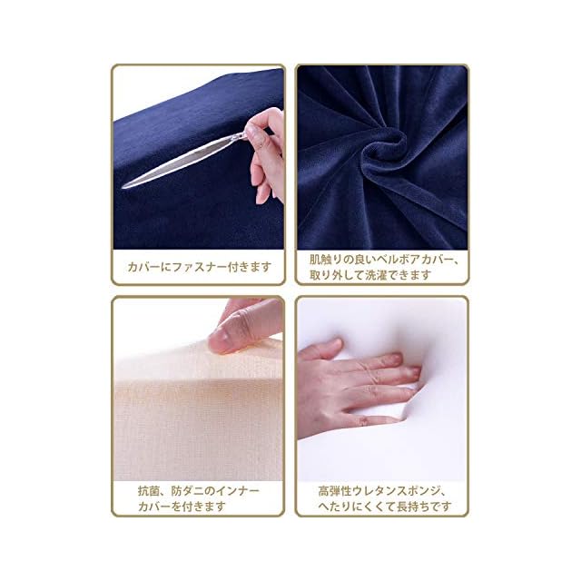 【素材】カバー:柔らかいベルボア生地;中身:高反発ウレタンフォーム。適当の硬さで、使い心地最高です。