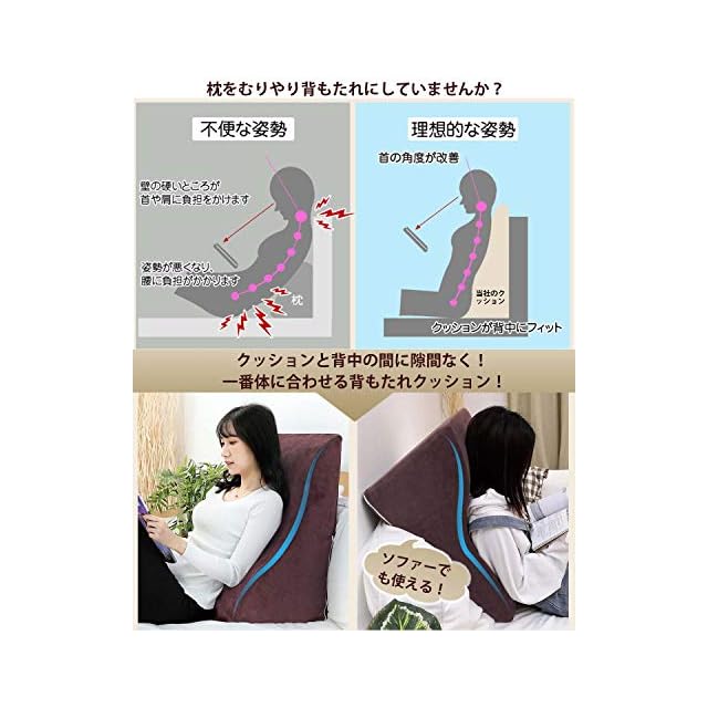 【最新型三角クッション】最新型三角クッションの形は背骨のS型にフィットする曲線です。高反発クッションのため、あなたの肩から腰までしっかり支えます。理想の姿勢をキープします。