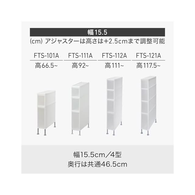 ライクイット (likeーit) ランドリー収納 すき間 引出し スーパースリム 3段 (着脱式アジャスター付) 約幅15.5×奥46.5×高82cm ホワイト 日本製 FTSー111A 洗濯機横で使える 引き出し 省スペース