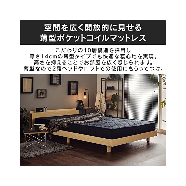 商品名:アイリスプラザ こだわり10層構造ポケットコイルマットレス セミダブル 部屋が広く見える薄型タイプ 厚さ14cm 高密度コイル510個 ムレを防ぐ3Dメッシュ生地 らくらく設置 圧縮梱包でお届け ブラック PKMT14N-SD