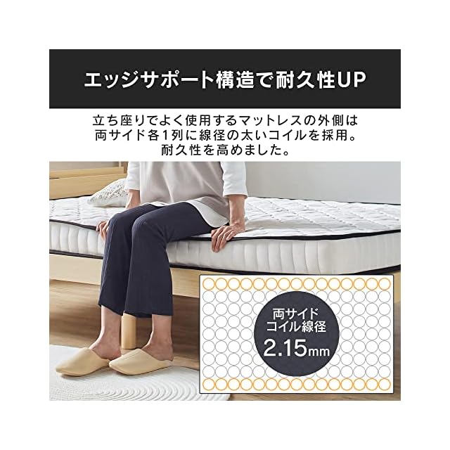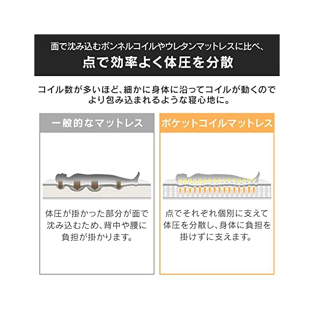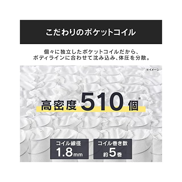 材質 側生地/表・サイド:ポリエステル100%、裏:不織布(ポリプロピレン100%)、充填物:ポケットコイル、ウレタンフォーム