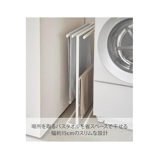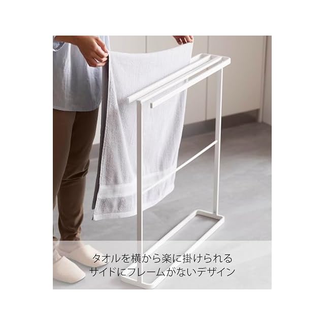 山崎実業(Yamazaki) 横から掛けられる バスタオルハンガー スリム ホワイト 約W65XD15XH75cm タワー tower タオルハンガー 物干し 5576