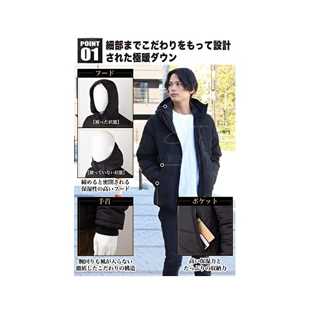 商品名:[GRADE] 極暖ダウン ダウンジャケット メンズ 『暖かさを極めたダウンジャケット』 ダウン 防寒 (JP, アルファベット, L, ブラック)