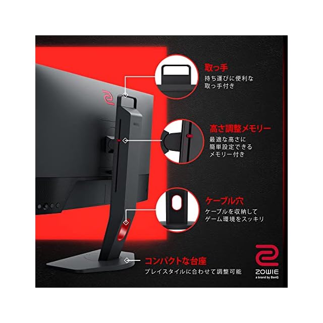 暗いシーンでの視認性を高めるBlack eQualizer機能、索敵がしやすくなるColor Vibrance機能、FPSモード搭載 指一本で簡単にスウィーベル及び高さ調整、プロゲーマー向けに設計された使いやすいデザイン(取っ手、イヤホンフック、配線穴など)