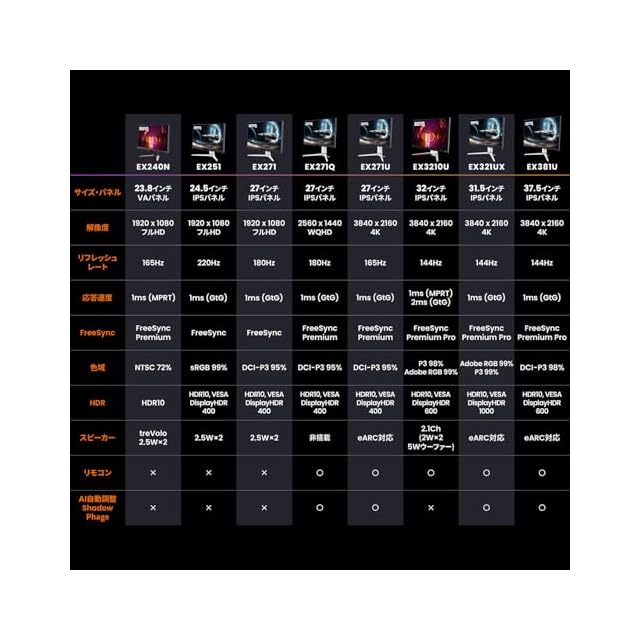 リフレッシュレート165Hz。B.I.+とHDRが融合した、HDRより綺麗な映像を楽しめる「HDRi」技術搭載