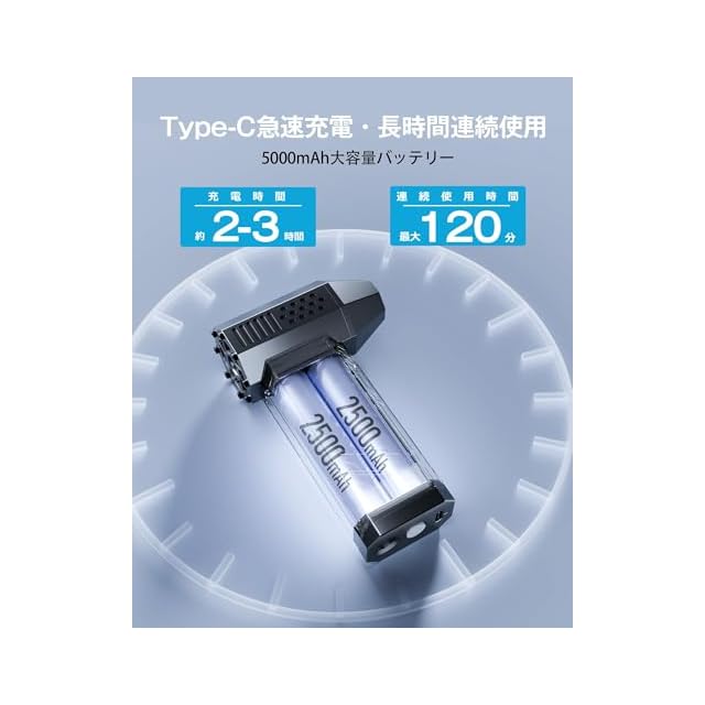 【 5000mAh大電池!120分連続使用+安全保護】従来2000mAh容量電池と比べて、 Tillmulya(ティルマヤ)電動エアダスターはバッテリー容量2倍以上!フル充電しなら、最大約120分で使用できます。また、加熱保護のために、中風と強風モードで10分後に電源を自動的にきれます。