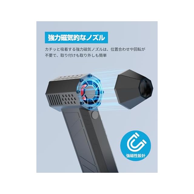 【 革新!磁石ノズルでカチッと簡単着脱】ノズルを近づけるだけで強力磁力が「カチッ」と自動吸着。位置合わせや回転が不要で、取り付け・取り外しがワンタッチ!耳障りな音もなく、長期間高性能をキープします。