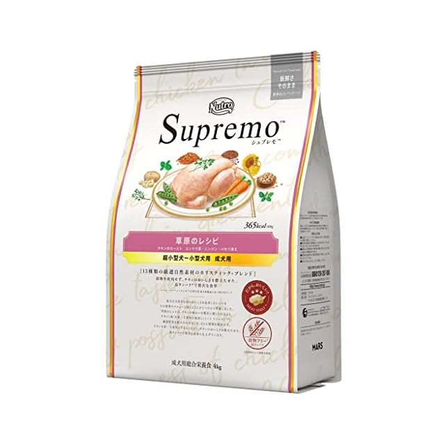 Nutro シュプレモ 超小型犬~小型犬用 成犬用 草原のレシピ チキン 4kg ドライフード 小粒 総合栄養食 ドッグフード 犬 グレインフリー 穀物フリー 厳選自然素材 香料・着色料 無添加 ニュートロ
