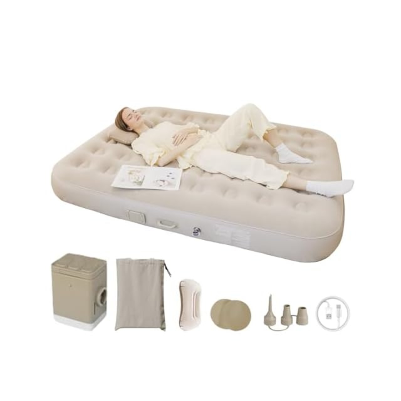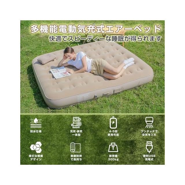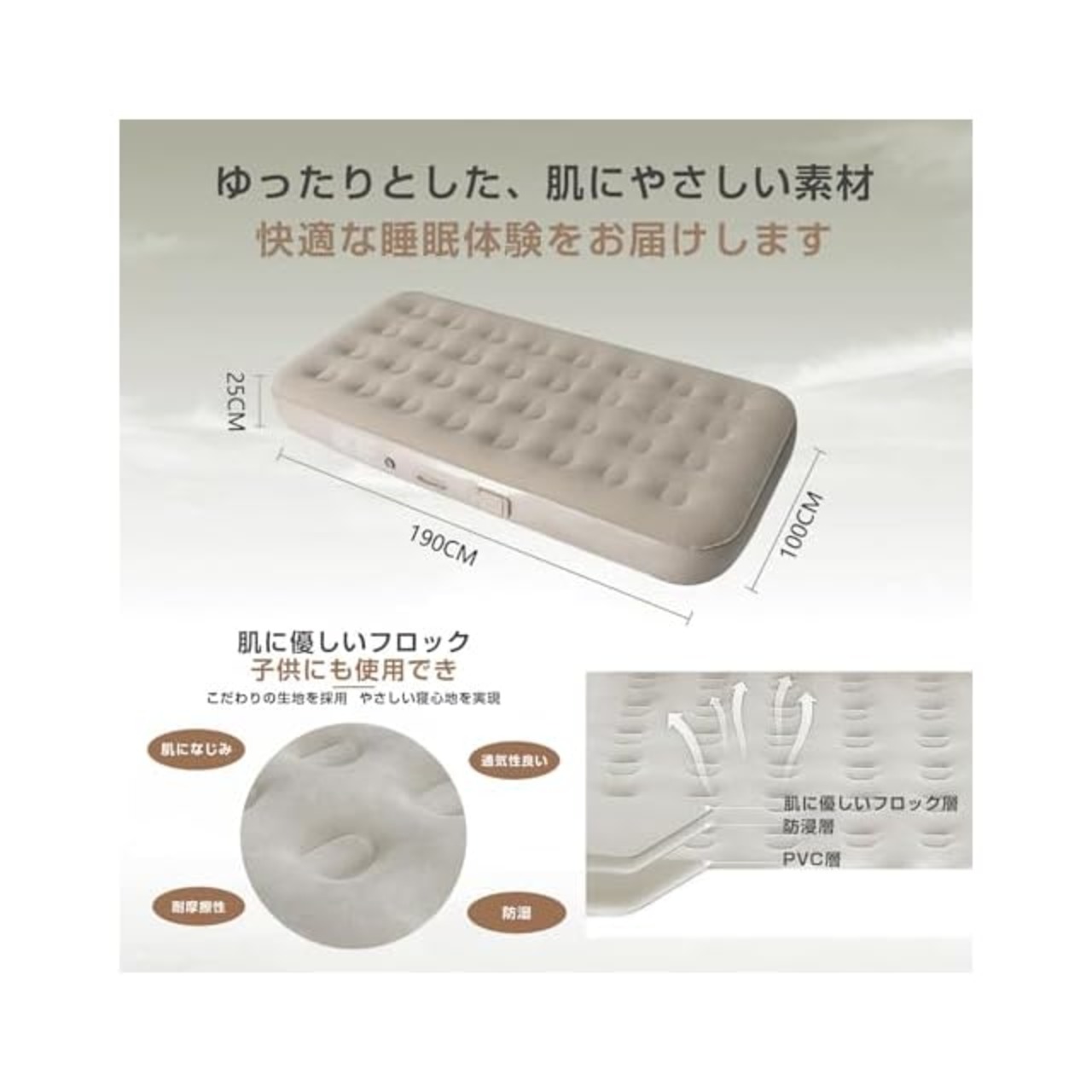 商品名:sumiren エアーベッド マットレ 電動 キャンプ 簡易 電動ポンプ内蔵 電動エア 90秒自動膨張 折り畳み式 シングル ダブル 25cm厚 極厚 耐荷重300kg 取り外し可能 通気性・防水性・快適性 収納袋付き 枕付き USB充電式 日本語取扱書 キャンプ アウトドア テント 車中泊 マット 防災用 来客用