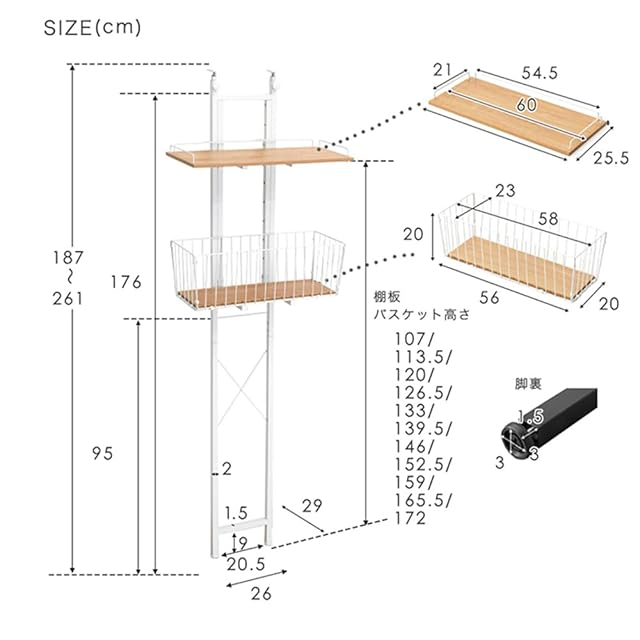 【サイズ】幅60×奥行29×高さ187~261cm
