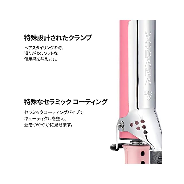 商品名:VODANA グラムウェーブカーリングアイロン【日本正規品】【日本仕様プラグ】ウェーブアイロン ヨシンモリ くびれ巻き 女神ヘア 韓国風ヘア ダメージ最小化 (ピンク, 40mm)