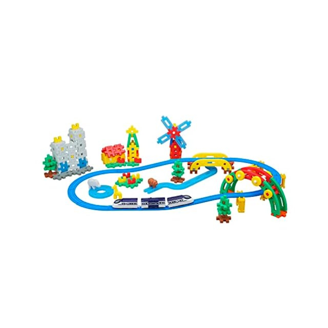 商品名:学研 プラレールと遊ぼう! Gakkenニューブロック ジオラマデラックスセット(対象年齢:3歳以上)83737