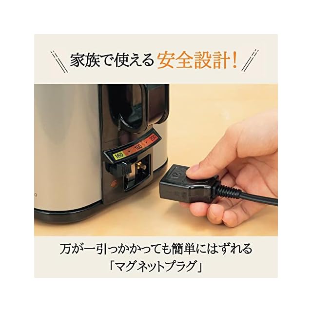 油温調節機能(160℃~200℃)。 便利なマグネットプラグ式。