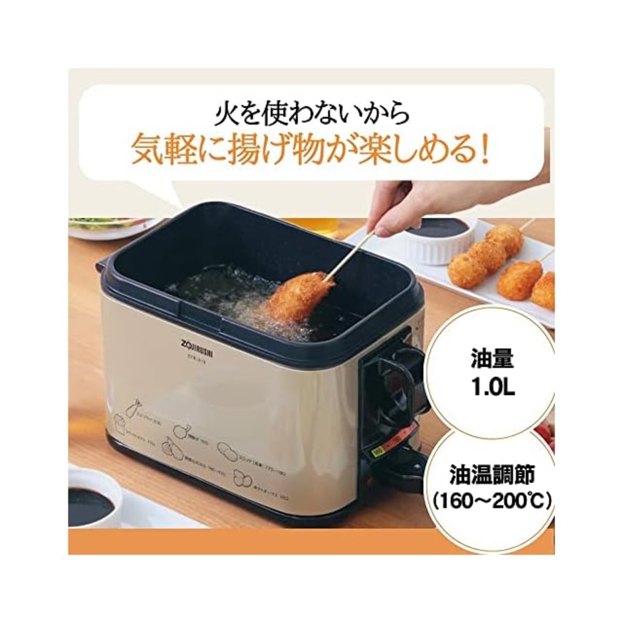 商品名:象印マホービン 電気フライヤー 1.0L あげあげ 火を使わずに揚げ物づくり 卓上 家庭用 油温調節機能 メタリックカカオ EFK-A10G