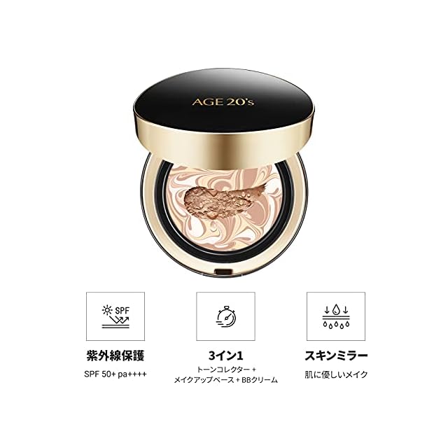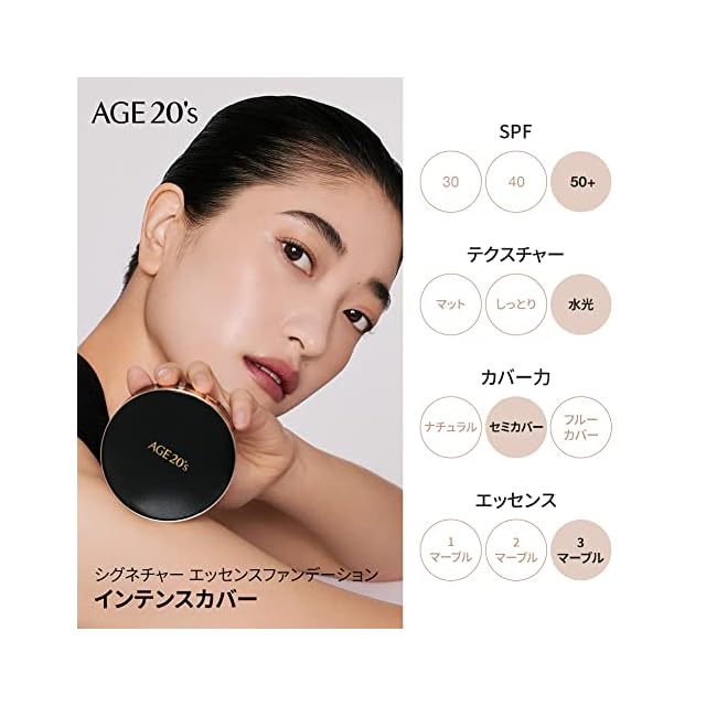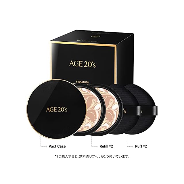 商品名:AGE20's公式 リフィル 含み シグネチャー インテンス カバー 71% エッセンス クッション ファンデーション, 日焼け止め メイクアップ SPF 50+ #21ライトベージュ 14g x 2個 韓国コスメ