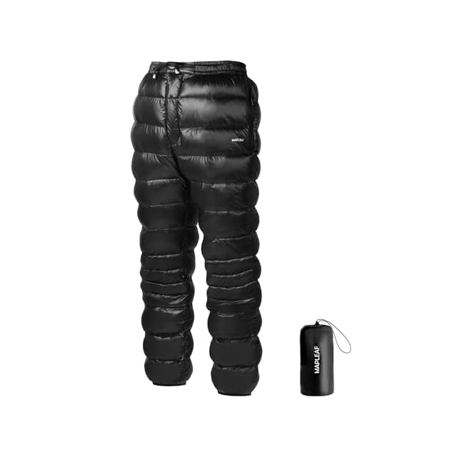 [Mapleaf] ダウンパンツ 防寒 メンズ レディース 冬登山 超軽量 800FP ボトムス 前開き 暖パンツ 冬服 スキー ゴルフ アウトドア用 作業用 コンパクト 撥水 防風 保温 5℃~-15℃ 肌触り良い 男性 女性 収納袋 ファスナーポケット付
