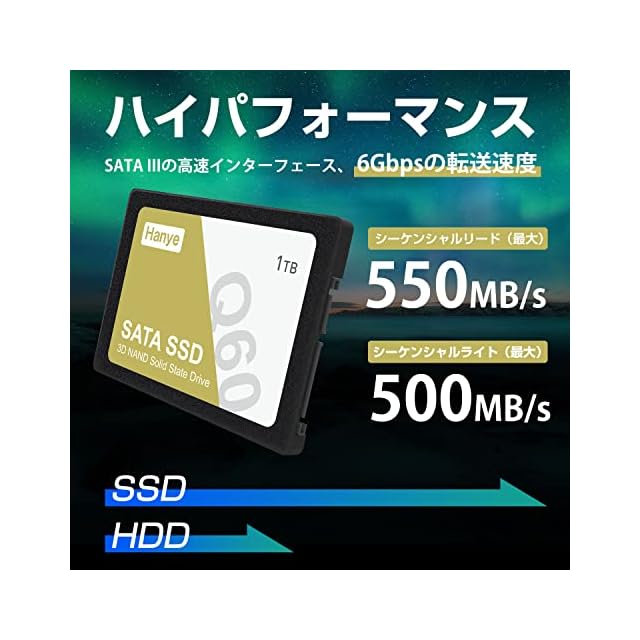 商品名:Hanye 1TB 内蔵型SSD 2.5インチ 7mm 3D NAND採用 SATAIII 6Gb/s 550MB/s 正規代理店品