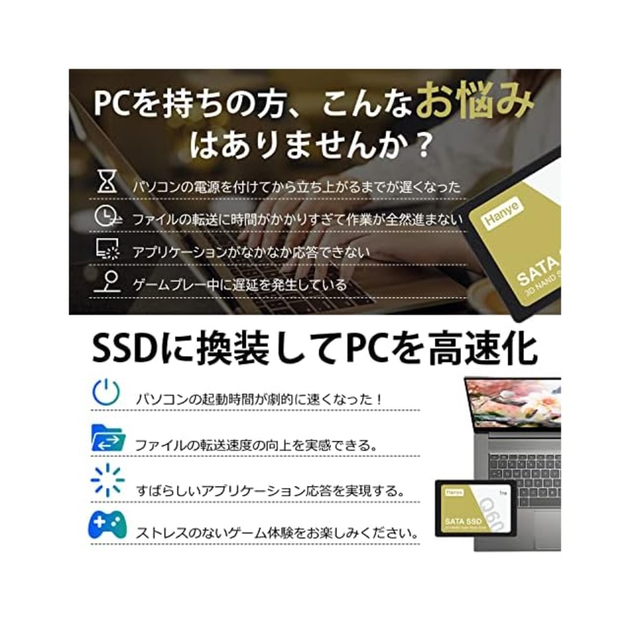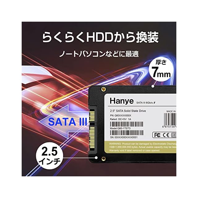 Hanye Q60 内蔵型SSD 2.5インチ 7mm、安心の国内サポート、 メーカー5年。