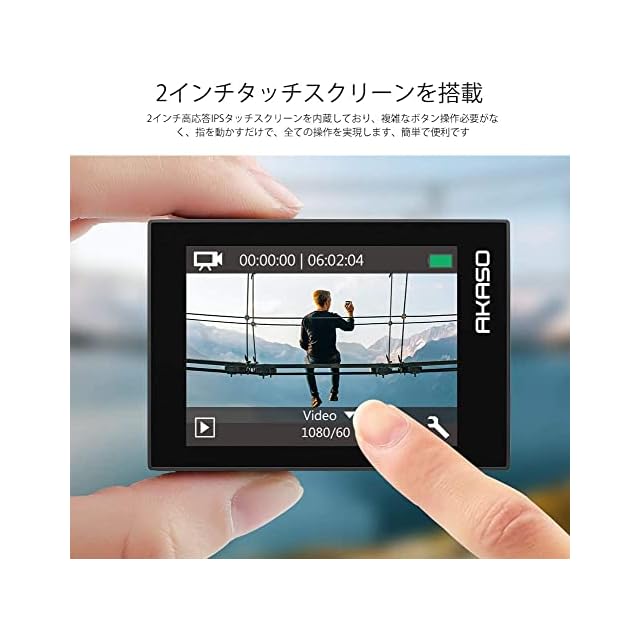 【2インチタッチスクリーン&EIS手ブレ補正】高感度革新的な2.0インチタッチパネル式液晶画面を採用し、1.5インチより画面確認がやすく便利です。複雑なボタン機能を覚える面倒なし、直感的な操作でスムーズに動けます。EIS手ブレ補正を搭載し、登山などで歩きながら撮影する際にも、ぶれのない鮮明な映像が撮影できます。滑らかな動画を楽しめましょう!