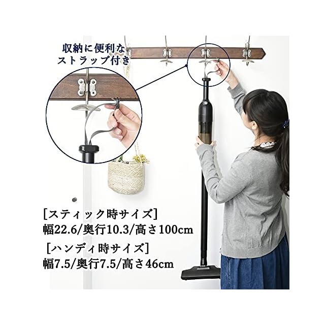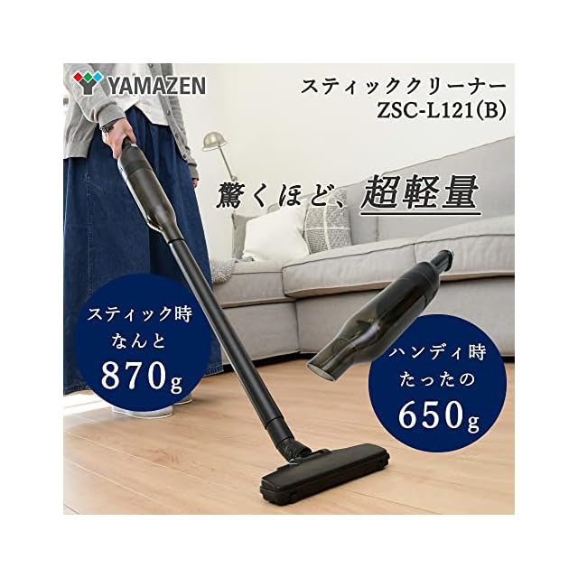 商品名:[山善] 掃除機 コードレス ハンディ スティッククリーナー 2WAY 軽量 870g 強力吸引 サイクロン式 静音 ブラック ZSC-L121(B)