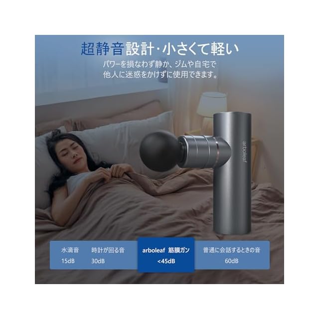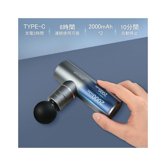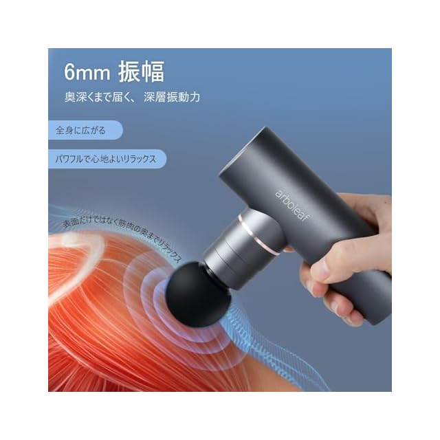 商品名:arboleaf 筋膜リリースガン ハンディガン MINI アルミ合金ボディ 5段階強力振動 自適応モード付き 4つのシリコンヘッド付属 筋膜ガン 筋肉リラックス Type-C充電式 2000mAh*2大容量(8時間以上連続使用) 500g小型 最速3200回/分 静音 コンパクト 携帯便利 収納袋&日本語取扱説明書付き プレゼント ギフト最適 日本国内サポート 一年メーカー