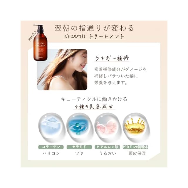 商品名:【香るサラツヤ美髪】 オルナ オーガニック スムース シャンプー トリートメント ヘアオイル 3点 無添加 自然派 まとまり 潤い ふんわりとした仕上がり [ 植物アロマの香り ] 日本製