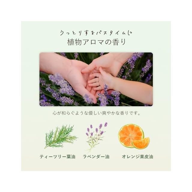 ✅【 アロマ の香り 】ティーツリー葉油、ラベンダー油、オレンジ果皮油を基調とした植物 アロマ で ボタニカル な香り。
