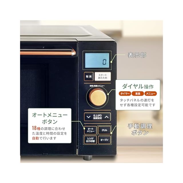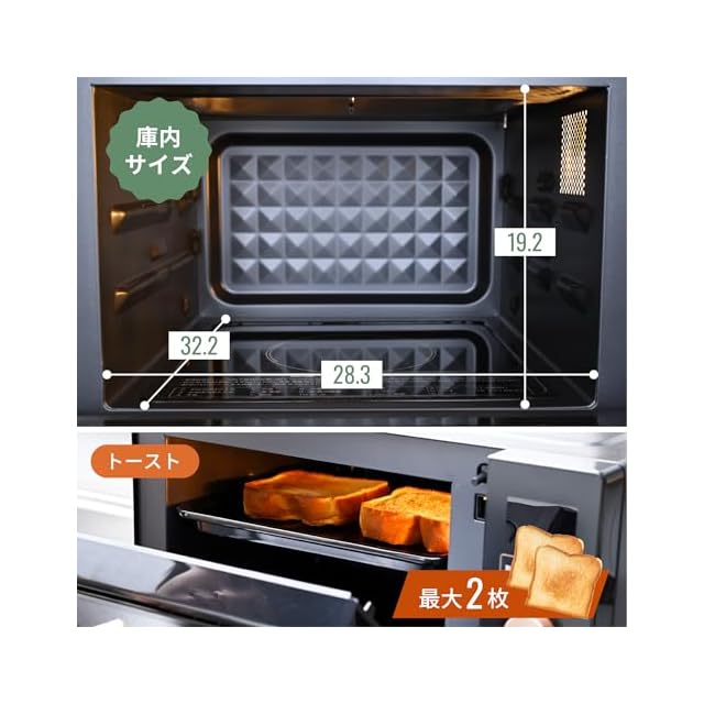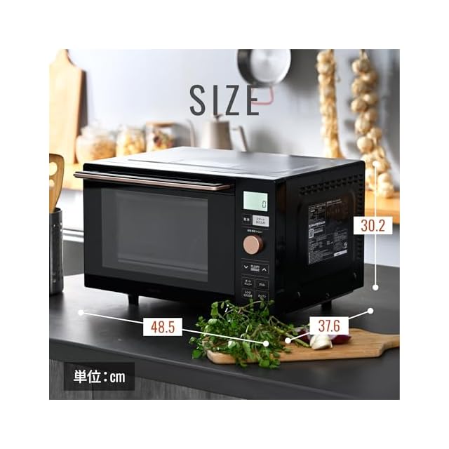 【商品仕様】本体サイズ:幅48.5×奥行37.6×高さ30.2cm、本体重量:15.3kg、庫内サイズ:幅28.3×奥行32.2×高さ約19.2cm、庫内容量:18L、電源コードの長さ:約1.5m、電源: AC100V(50/60Hz共用)、消費電力:[レンジ=900/1250W(50/60Hz)][オーブン=1380W(温度調節:35・40℃(発酵)、100~250℃)][グリル=820W]、レンジ高周波出力:650W(60Hzのみ)/500W/200W、期間:お買い上げ日より1年間(の範囲については、取扱説明書をご確認ください。(一般家庭用以外(業務用など)に使用された場合の故障及び損傷などは対象外となります))