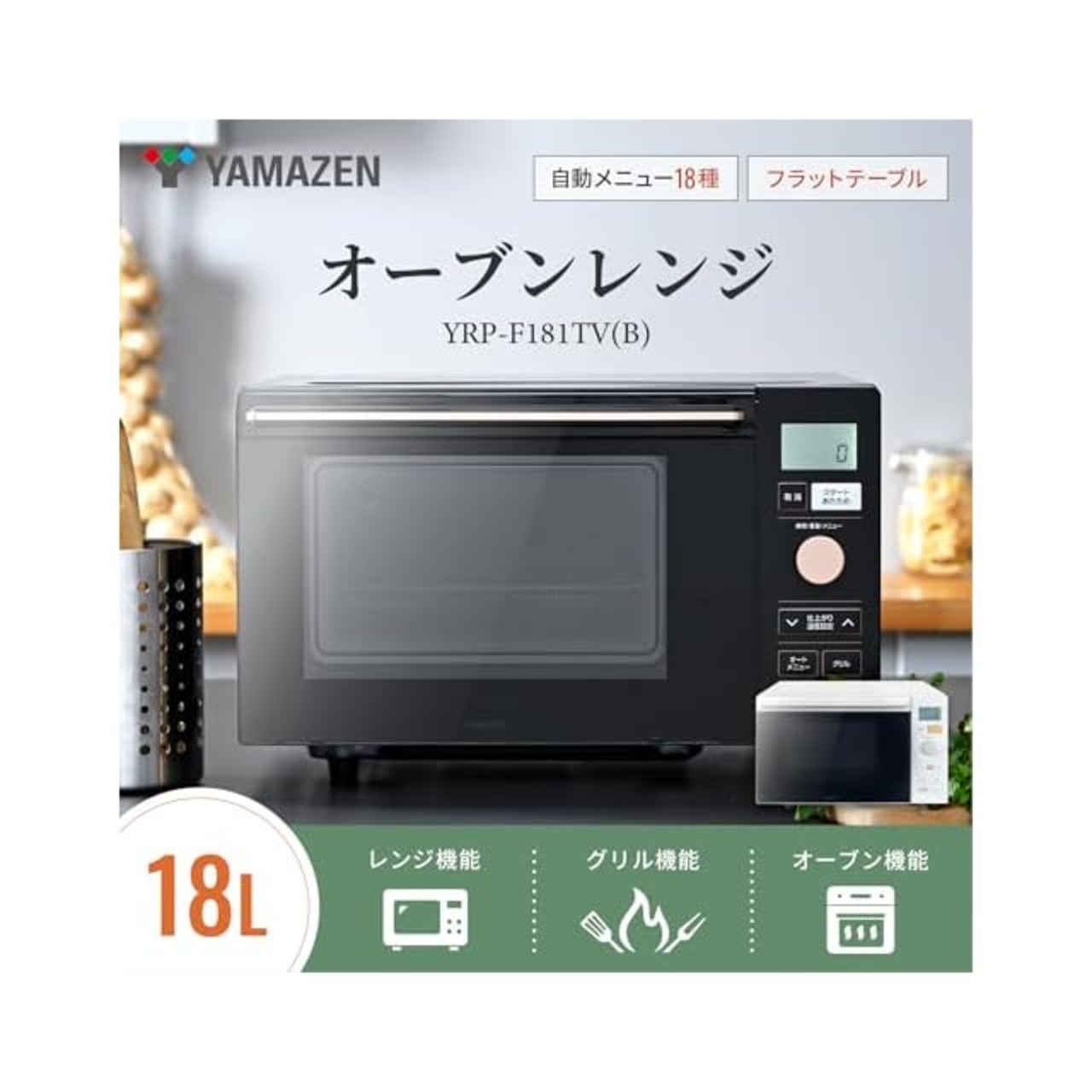 [山善] 電子レンジ オーブンレンジ 18L 一人暮らし 二人暮らし フラットテーブル トースト機能付き オーブン機能付き 自動メニュー18種類 簡単お手入れ グリル機能 ブラック YRP-F181TV(B)