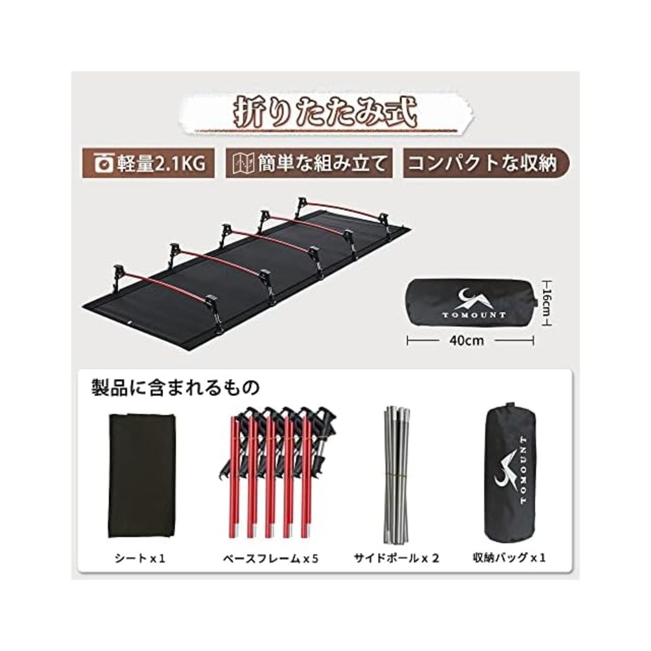 【強度のアップに成功】★2020年TOMOUNTはお客様の声に応じて、素材と縫製工程から、より安心・快適な設計に改良済み。よりベストなキャンピング心地を目指しています 。 ★【拡張ロック】支柱のサポートを強化し、それによって圧力下のキャンプコットの安定性を高めます。【高弾性コード】ヒモの弾力性と靭性が強化され、割れにくく、より安全です。【7075アルミニウムポール】航空材料は耐荷重が最大化しています、静止耐荷重150kg。表面の陽極酸化には噴砂プロセスを加えて、色褪せなく、防錆しています。