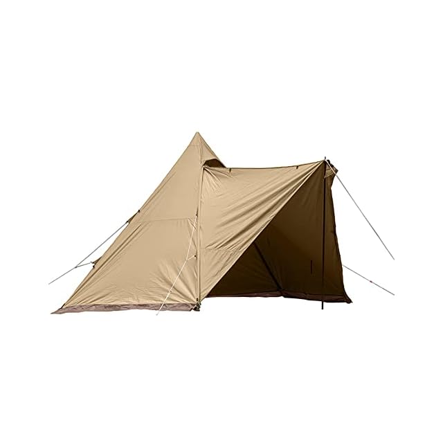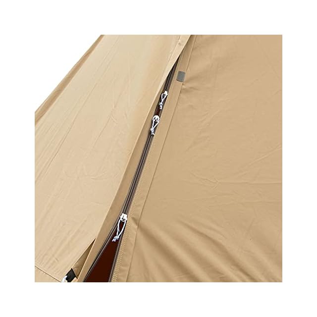 夏は木陰のように涼しく、冬は暖気を逃さない。抜群の遮光性と通気性を兼ね備えた綿混紡のテント。前室として使用できるサイドフラップ付き