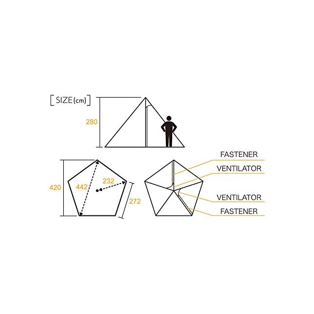 素材:[本体] コットン混紡生地( TC ) 撥水加工済み( ポリエステル65%コットン35% ) [裾部( スカート )] ポリエステル [ポール] スチール製5本継ぎ( φ32mm/280cm )×1本、スチール製4本継ぎ( φ22mm/200cm )×1本