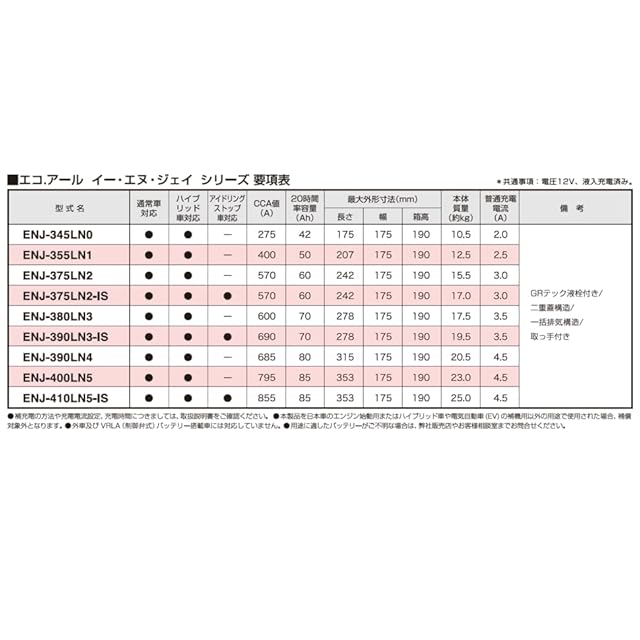 商品名:GSユアサ (ジーエスユアサ) ENJ 375 LN2 IS ECO.R ENJ 国産車専用バッテリー アイドリングストップ車用 GRテック液栓 GS YUASA
