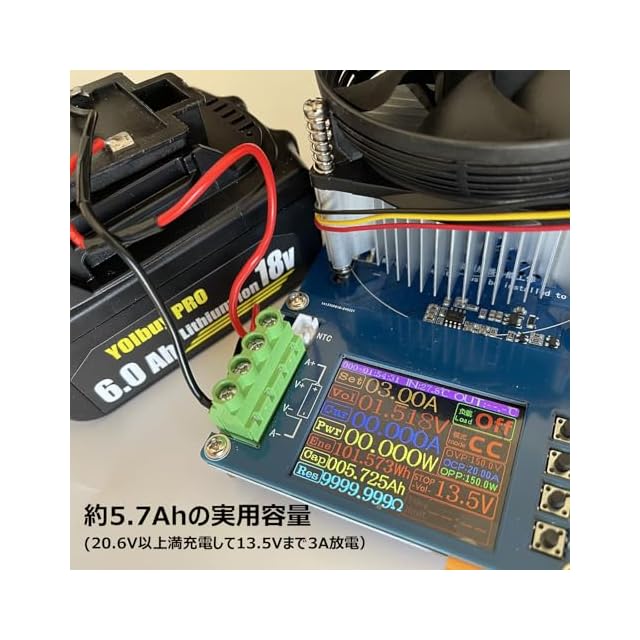 高品質なAグレードのセルを使用し、6.0Ahの実容量と60Aの最大放電電流を実現。