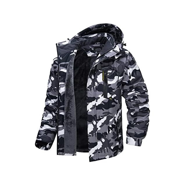 [TACVASEN] アノラック ウンテンジャケット バイク コート 釣り 保温ウエア 裏起毛 防寒 メンズ 登山服 フリース バイク用 フード付 黒迷彩 XL