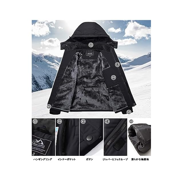 商品名:[TACVASEN] アウトドア コート ウンテンジャケット アノラック 防寒 アウターウエア スキーウェア 撥水加工 保温 バイク 秋冬用 ブラック 2XL