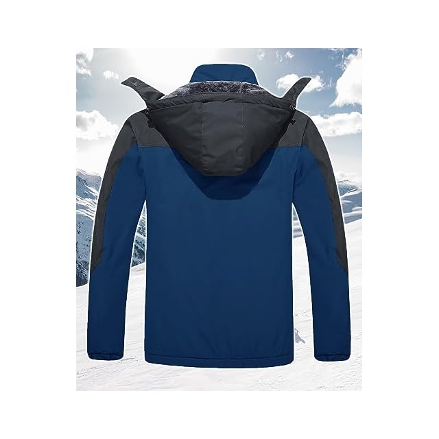 [TACVASEN] カジュアル 登山ウエア 裏ボア 防風 大きいサイズ マウンテンパーカー 保温 登山服 ハイキング 帽子付 カウボーイブルー 3XL