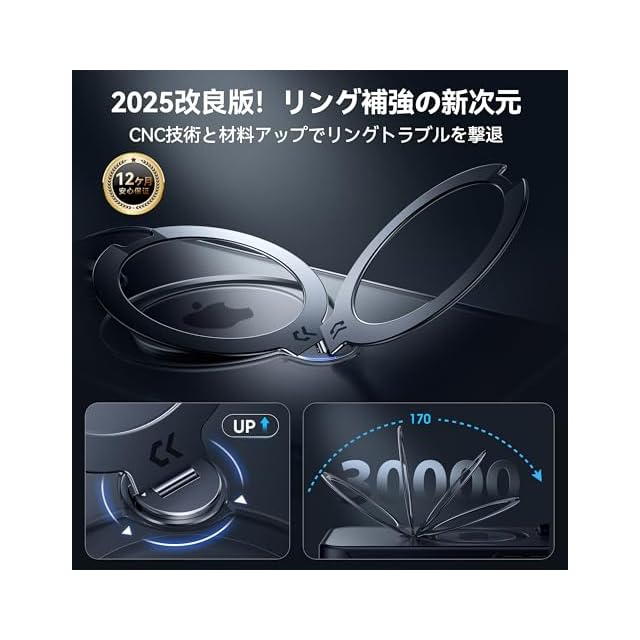 【これで安心!新しい技術で全ての問題を解消】市販品にありがちな「横置きにすると角度調整ができない」、「耐久性がない」、「安定性がない」などの悩みを、新しい製品にフィードバックして全ての問題を解消しました!最新の360度回転スタンド技術を搭載し、10000回以上の耐久テストをクリア。材質・形状・加工技術に徹底的にこだわり、市販品に比べて約10倍の圧倒的な耐久性と強度を実現したことにより、リングの部分緩みや破損も一気に解消!✅安心の12ケ月間製品( KOOCare Program)も付属し、何か不具合などがあれば無料で交換いたします。ご安心してお買い求めくださいませ(購入履歴→購入商品→販売者→質問する欄からご連絡できます)。