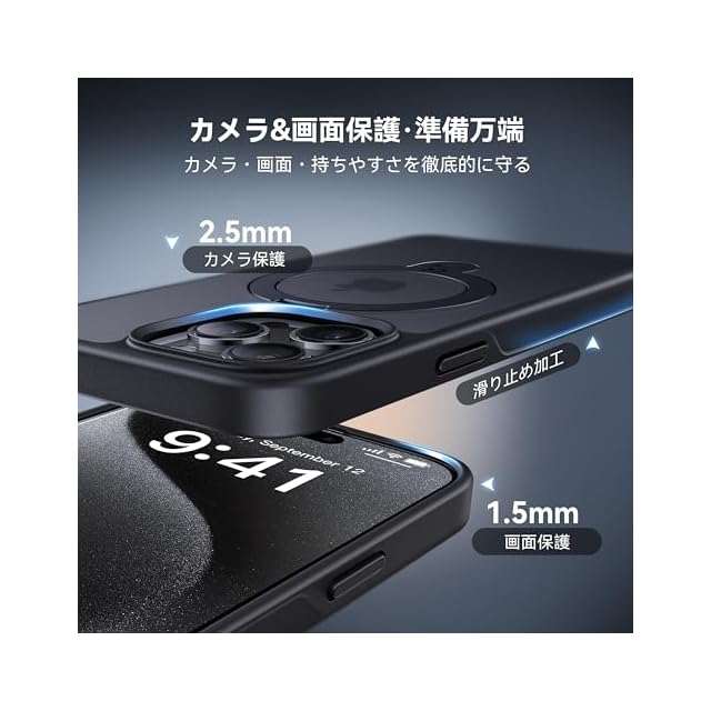 商品名:【2025最高傑作&定点360度回転】CASEKOO iPhone 15 Pro Max 用 ケース 超強磁力 米軍MIL規格 耐衝撃 高耐久性【横縦両立・角度調整】指紋防止/マット仕上げ/黄変防止/薄型半透明 ストラップホール付き ワイヤレス充電対応 アイフォン15pro max用 ケース(ブラック)
