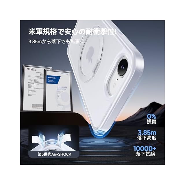 【信じられない頑丈さ!米軍規格の超強保護】どんなに気を付けていても、ふとした瞬間にスマホ本体が傷ついてしまう可能性があり、一度傷がついてしまうと元に戻すのは難しく、しかも修理代高くて。弊社のケースは第五世代Air-SHOCKを搭載し、特殊なTPUとPC素材を組み合わせた三層構造で、どんな衝撃にも対応できる耐衝撃性を誇ります。3.85メートルからの落下試験を10,000回クリアし、米軍MIL規格にも準拠しているため、最も過酷な状況でもスマホをしっかりと守ります。耐久性と信頼性を兼ね備えたこのケースで、大切なスマホを丁寧に扱いましょう。米軍MIL認証済み番号:GZMR4240705237707