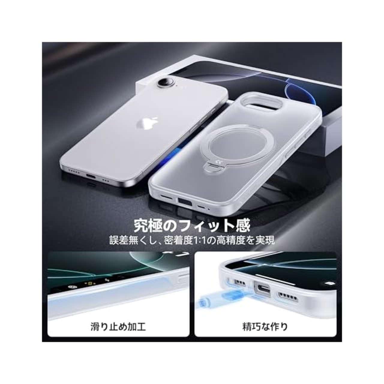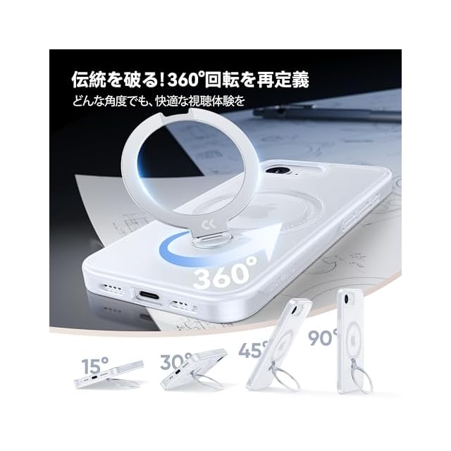 商品名:【2025最高傑作&定点360度回転】CASEKOO iPhone 16e 用 ケース 米軍MIL規格 耐衝撃 MagSafe対応 高耐久性【横縦両立・角度自由調整】急速充電対応 指紋防止/マット仕上げ/黄変防止/半透明 超強磁力 ラップホール付き ワイヤレス充電対応 アイフォン16e 用ケース 6.1インチ「MagicStand Pro」(マットクリア)