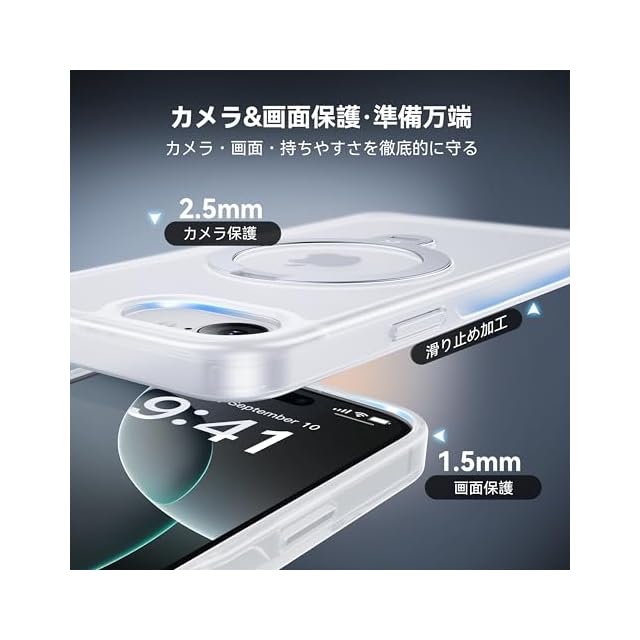 【擦れ防止デザイン&細部までこだわり】ケースの縁の部分は画面とカメラレンズより1.5mm以上高く、下置きしても画面が直に接触しないので、画面やカメラが擦れることを防ぎます。本体の細部までしっかり保護しているので、とっても安心!また人間工学に基づいた枠に凹凸デザインが滑り止め効果を発揮し、ホールドしやすいです。さらに、ストラップホール付きで、落下や紛失を防ぎ、安心して使えます。対応機種:iphoneケース 16e