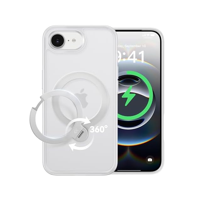 【2025最高傑作&定点360度回転】CASEKOO iPhone 16e 用 ケース 米軍MIL規格 耐衝撃 MagSafe対応 高耐久性【横縦両立・角度自由調整】急速充電対応 指紋防止/マット仕上げ/黄変防止/半透明 超強磁力 ラップホール付き ワイヤレス充電対応 アイフォン16e 用ケース 6.1インチ「MagicStand Pro」(マットクリア)