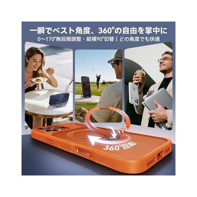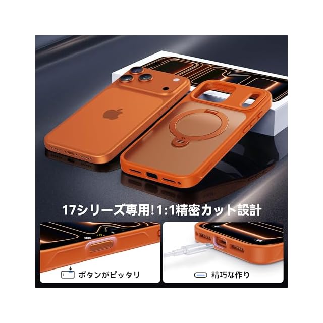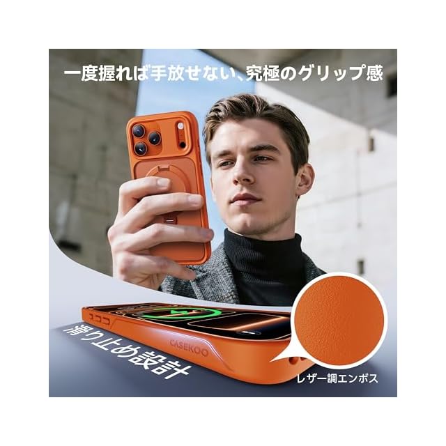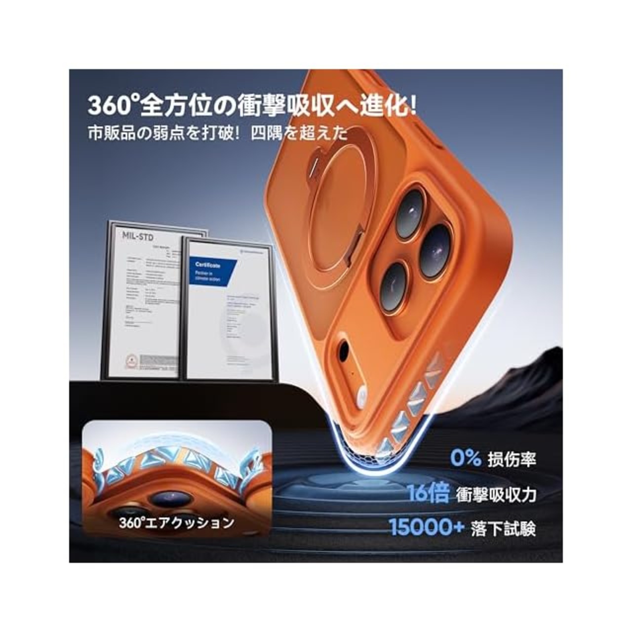 商品名:【2025最高傑作&定点360度回転】CASEKOO iPhone 17 Pro 用 ケース MagSafe対応 米軍MIL規格 360°全方向耐衝撃 【横縦両立・角度自由調整】最大25W急速充電対応 指紋防止/マット仕上げ/黄変防止/半透明 ラップホール付き ワイヤレス充電対応 いphone17pro 用ケース 6.3インチ「MagicStand Pro」(オレンジ)