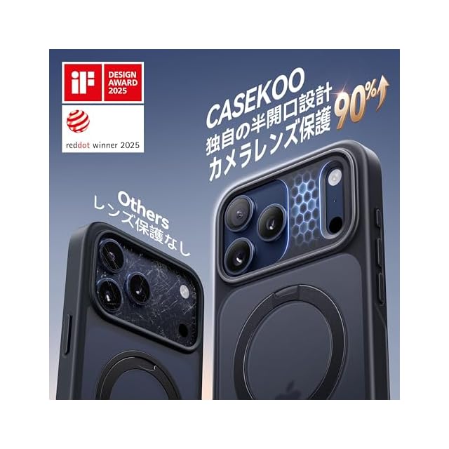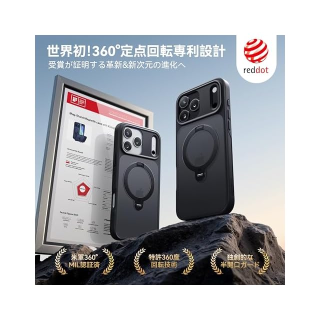 商品名:【2025最高傑作&定点360度回転】CASEKOO iPhone 17 Pro Max 用 ケース MagSafe対応 米軍MIL規格 360°全方向耐衝撃 【横縦両立・角度自由調整】最大25W急速充電対応 指紋防止/マット仕上げ/黄変防止/半透明 ラップホール付き ワイヤレス充電対応 いphone17promax 用ケース 6.9インチ「MagicStand Pro」(ブラック)