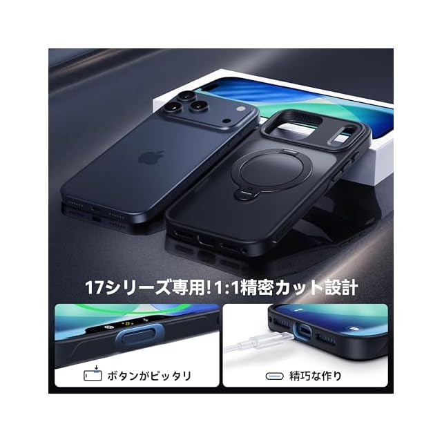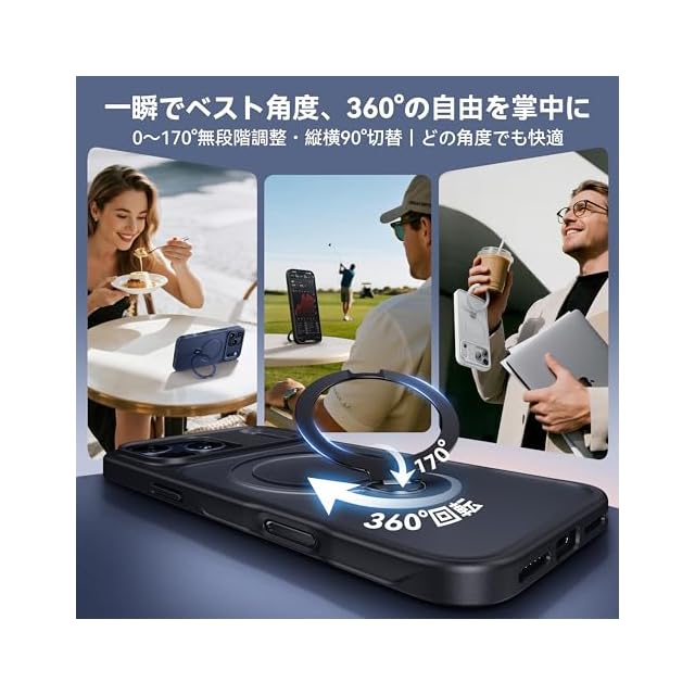 【MagSafe対応を極めた、業界最強18N磁力】 位置合わせ不要、装着した瞬間、車載ホルダーやウォレットなどのMagSafe対応アクセがピタッと吸着。独自のHalbach配列+n58グレード磁石により、業界最強クラス18Nの吸着力を実現、消磁や信号干渉の心配も一切なし。さらに、360°定点回転設計だから、車内での揺れや急ブレーキでもズレず・回らず・傾かない。視線がブレず、運転中のナビ確認も安全そのもの。両面マグネット構造で、冷蔵庫やロッカーにもぴたり。レシピ確認も動画視聴も、完全ハンズフリー革命。※設置面の素材によって磁力が弱まる場合があります。対応機種:いphone17promaxケース magsafe対応