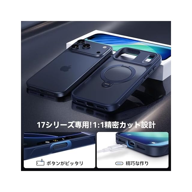 【限界突破!ケースの“最終進化形”】 「もう、迷わない。」——全てを叶えるケース、ついに登場。 17シリーズ専用設計で、デザインも機能も“全部盛り”に進化。 新搭載360°回転スタンドで、どんな姿勢も“ちょうどいい”角度に。さらに、市販品の弱点「四隅だけ防御」を打破! 側面まで包む360°耐衝撃構造で、落下安心感が次元違い。独自の半開口型カメラガードが、17シリーズの史上最大レンズを美しく防御。保護とデザイン、両立の奇跡。新開発レザー調エンボス加工が、汗・指紋・ベタつきをシャットアウト。べたべた、すべすべ、サヨナラ!業界最強18N磁力がMagSafe対応製品をピタッと固定。ズレ知らずの絶対安定。高級感あるマット調仕上げで、贈り物にも人気の逸品。機能 × 快適さ × 美しさをすべて満たした、スマホケースの「完成形」。