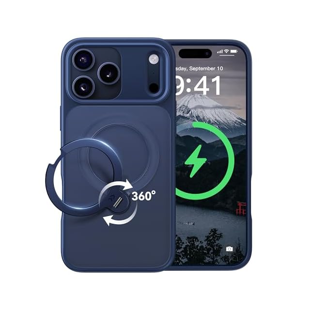 【2025最高傑作&定点360度回転】CASEKOO iPhone 17 Pro Max 用 ケース MagSafe対応 米軍MIL規格 360°全方向耐衝撃 【横縦両立・角度自由調整】最大25W急速充電対応 指紋防止/マット仕上げ/黄変防止/半透明 ラップホール付き ワイヤレス充電対応 いphone17promax 用ケース 6.9インチ「MagicStand Pro」(ブルー)
