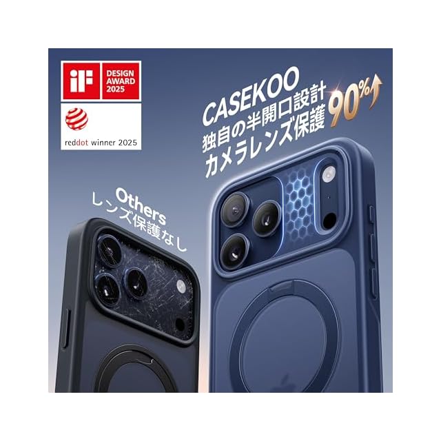商品名:【2025最高傑作&定点360度回転】CASEKOO iPhone 17 Pro Max 用 ケース MagSafe対応 米軍MIL規格 360°全方向耐衝撃 【横縦両立・角度自由調整】最大25W急速充電対応 指紋防止/マット仕上げ/黄変防止/半透明 ラップホール付き ワイヤレス充電対応 いphone17promax 用ケース 6.9インチ「MagicStand Pro」(ブルー)