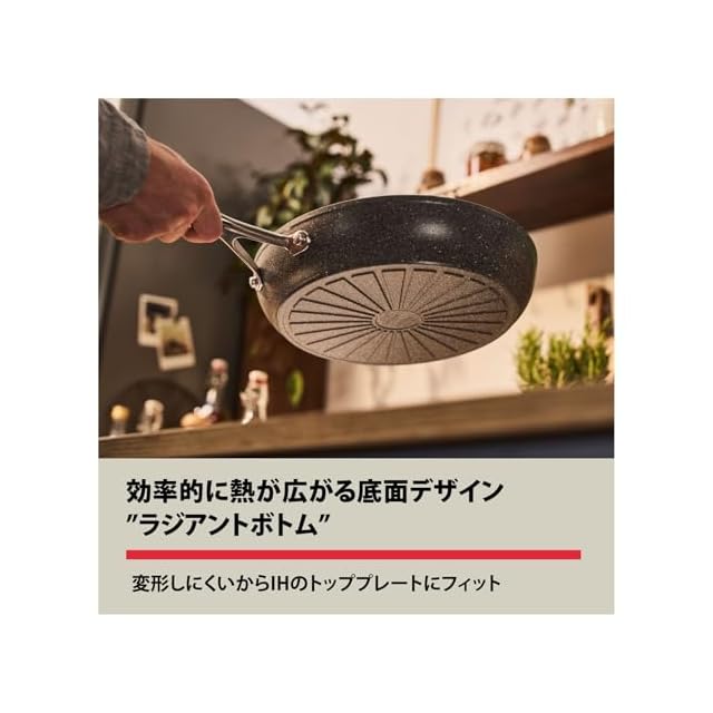 【熱ムラを防ぐ厚底“ラジアントボトム”】底面にしっかりと厚みを持たせたラジアントボトム構造が、熱を均一に分散。ムラなく美味しく焼き上げ、プロのような仕上がりに。変形しにくく、長く使える耐久設計です。